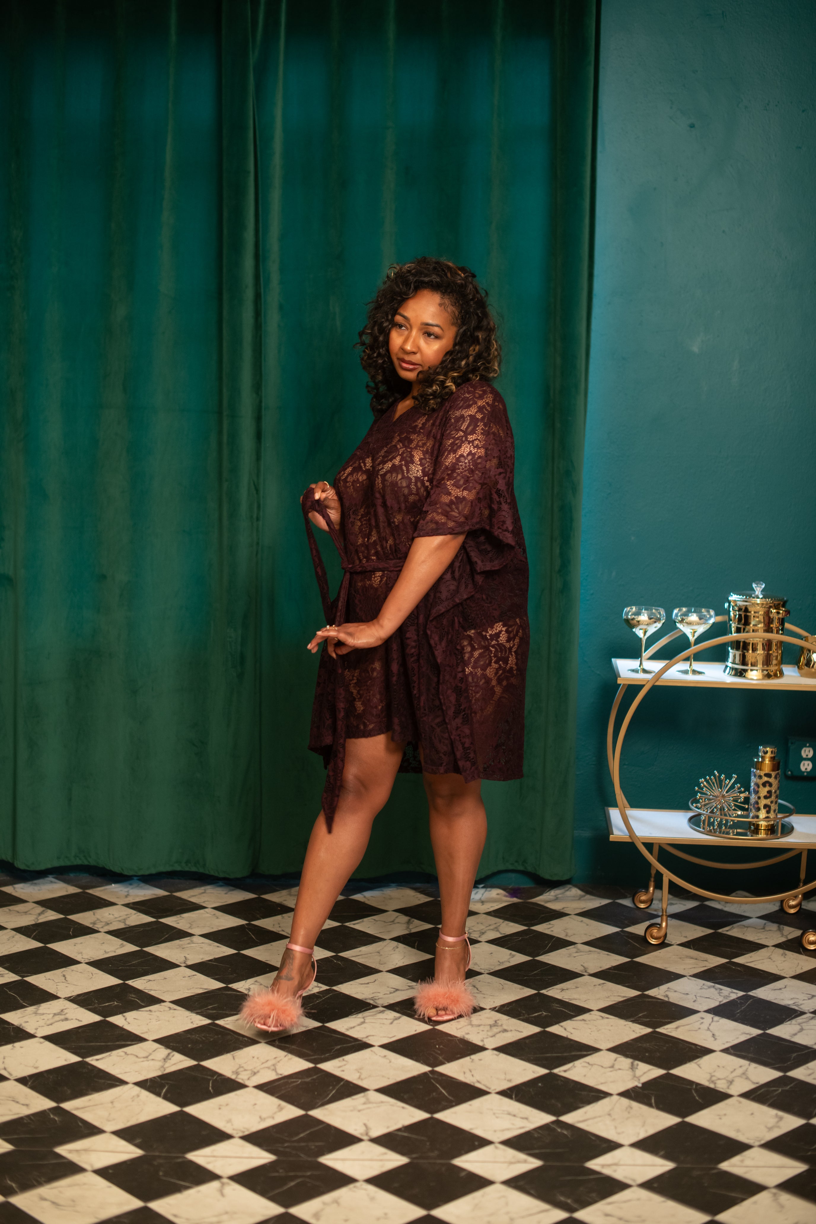 Black Orchid is romance in motion. This seductive sheer lace muumuu drapes effortlessly with a matching cloth belt that lets you switch up the vibe—cinch it for a sultry silhouette or to tie your ankles up…whatever you’re into, we don’t judge. Bold, flirty, and a little dangerous.