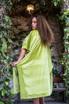 From the tarmac to the tropics in Moss Fever — a bold green apple velvet muumuu made for luxury lounging. With a soft V-neckline, velvet texture, and a vibrant hue that pops in any light, this dress is relaxation energy. While the relaxed fit keeps things easy access for cruising, flying, or just feeling fabulous at home. Pockets included.