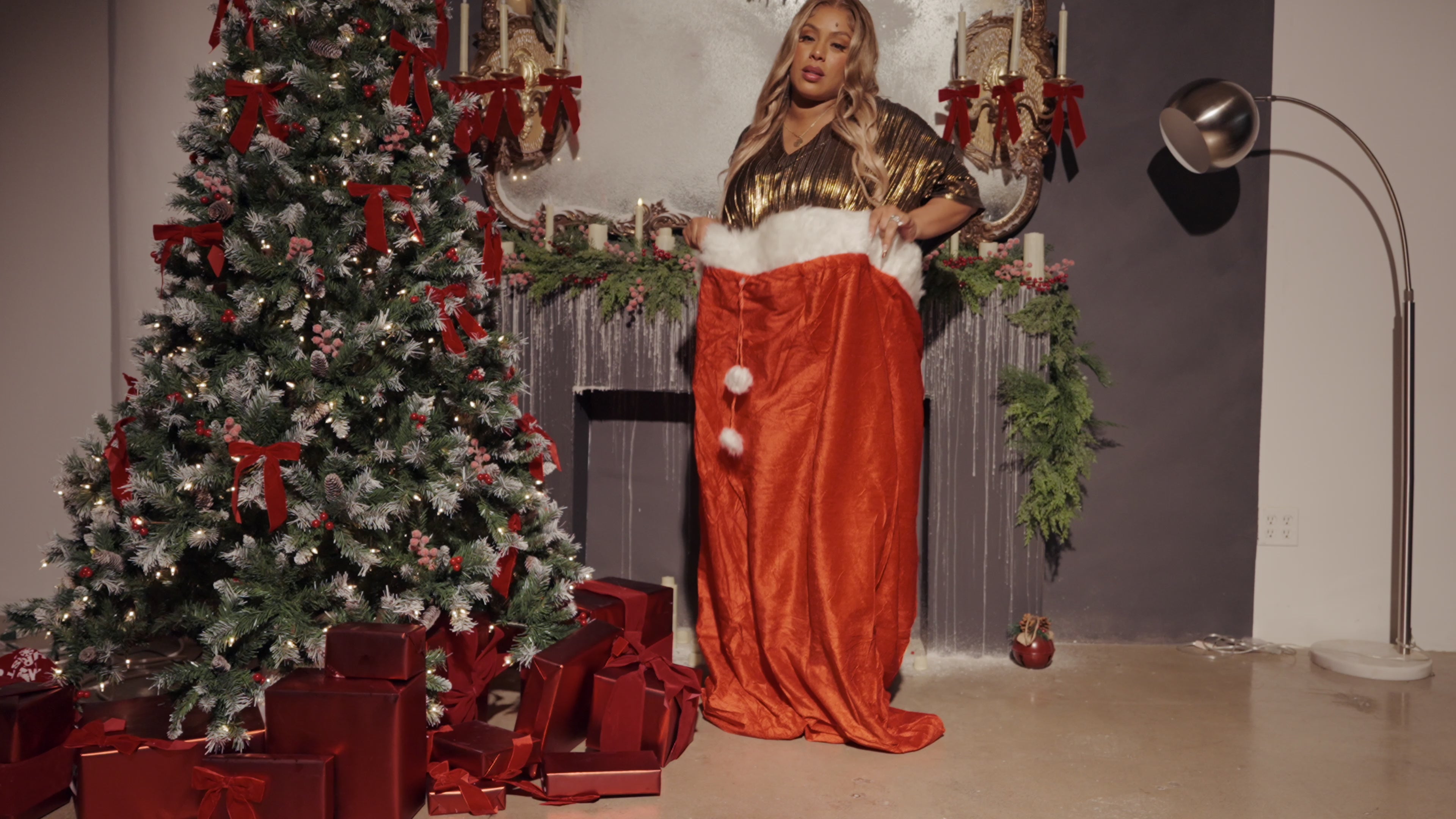 Light up every room in Deck My Halls, a shimmering golden muumuu made to make you the moment. The V-neck and belt let you style it cinched or free, and the short silhouette keeps it fun,sexy, and full of muuvment. Dress it up with boots or heels for a brunch or night out, or slip into it for luxe relaxation at home or on vacation. Perfect for festive gatherings and New Year’s celebrations, this muumuu turns you into a walking trophy all season long.