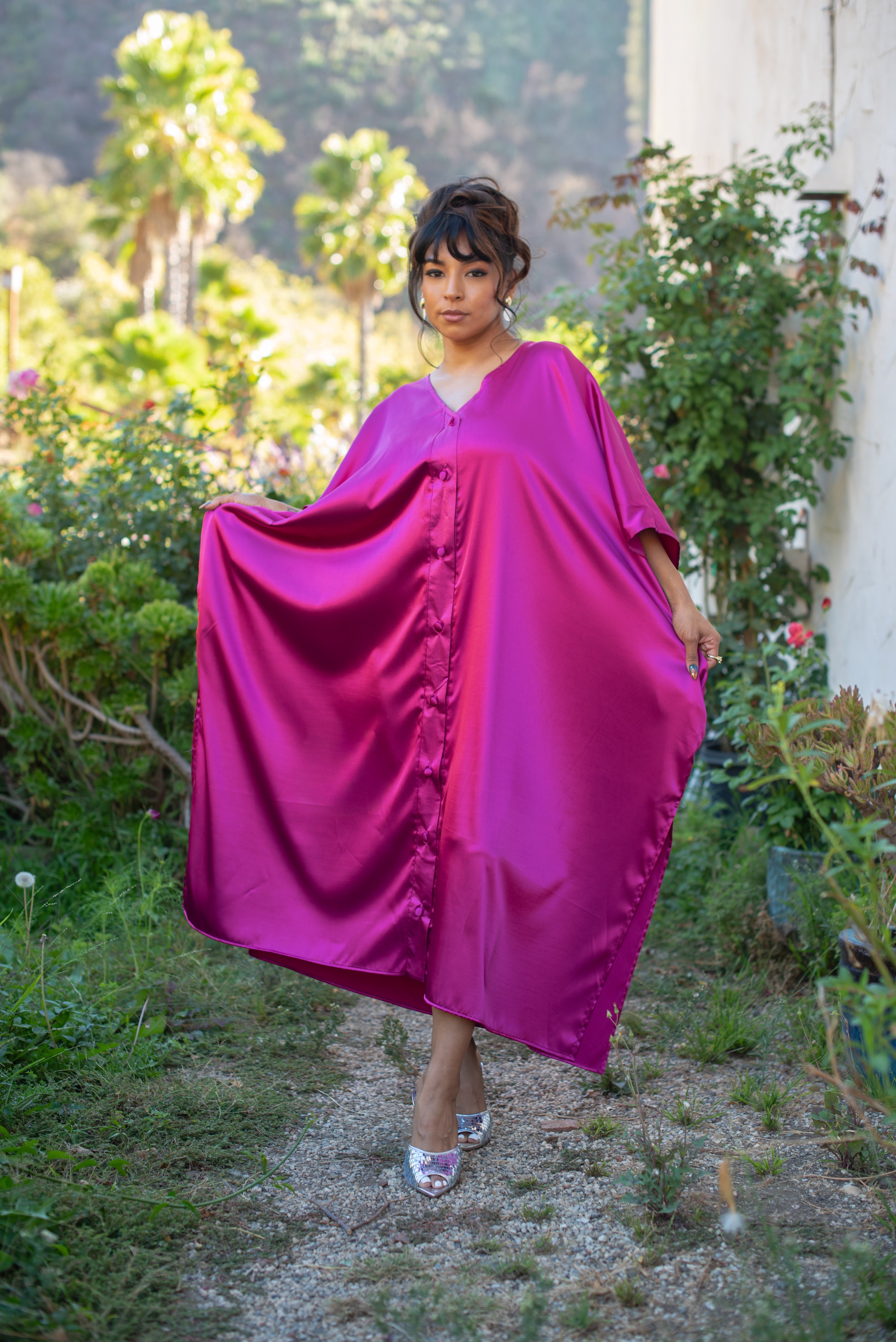 Magenta Hour brings easy charm to your wardrobe. The button-down design gives you options, the side slits give you freedom, and the color does all the talking. Flowy, breathable, and cut to muuv with you! This is the one that makes staying in or stepping out feel equally like a moment