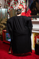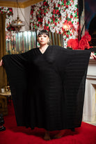 A vision of allure and grace. Long, black, and draped in winged arms that exude sophistication. An internal belt, your secret weapon to sculpt your silhouette. Embrace the mystique, captivate in every Muuv.