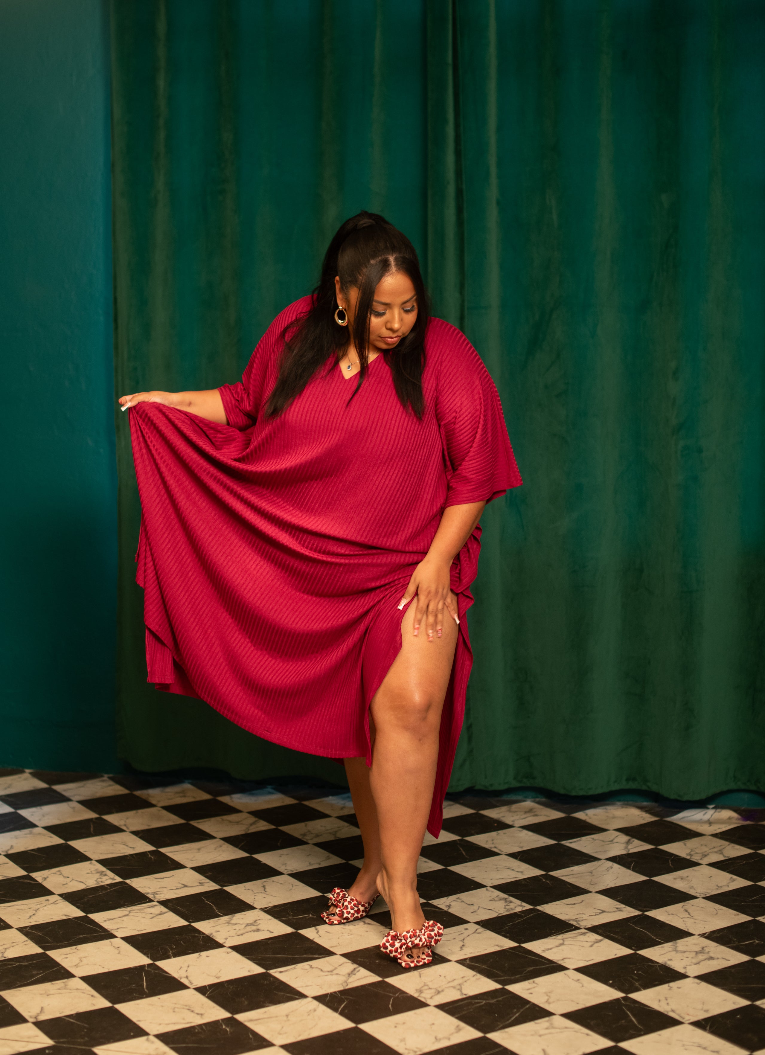 Fine Wine is as smooth as your favorite pour. Made from soft rib knit in a deep burgundy, this V-neck beauty is perfect for kicking back with a glass of wine or whining that waist while you throw it back. Cute, comfortable, and just the right fit for a good time