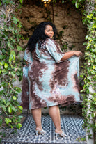 The Coastal Kaleidoscope muumuu brings a splash of tropical charm to your wardrobe. With its aqua and brown tie-dye print and soft V-neck design, it’s as breezy and comfortable as a perfect vacation day. Whether you’re enjoying resort wear or just creating your own island vibe at home, this muumuu effortlessly combines style and relaxation, making you feel like you’re on a tropical getaway.