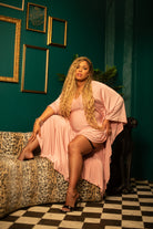 Bella Blush is soft, flowing perfection. Crafted from plush Venechia fabric, this floor-sweeping muumuu drapes beautifully with every Muuvment. The long sleeves and elegant V-neck add timeless charm, while the internal belt lets you cinch the waist for a flattering, customized fit. Bella Blush is made for lounging in luxury or stepping out in style.