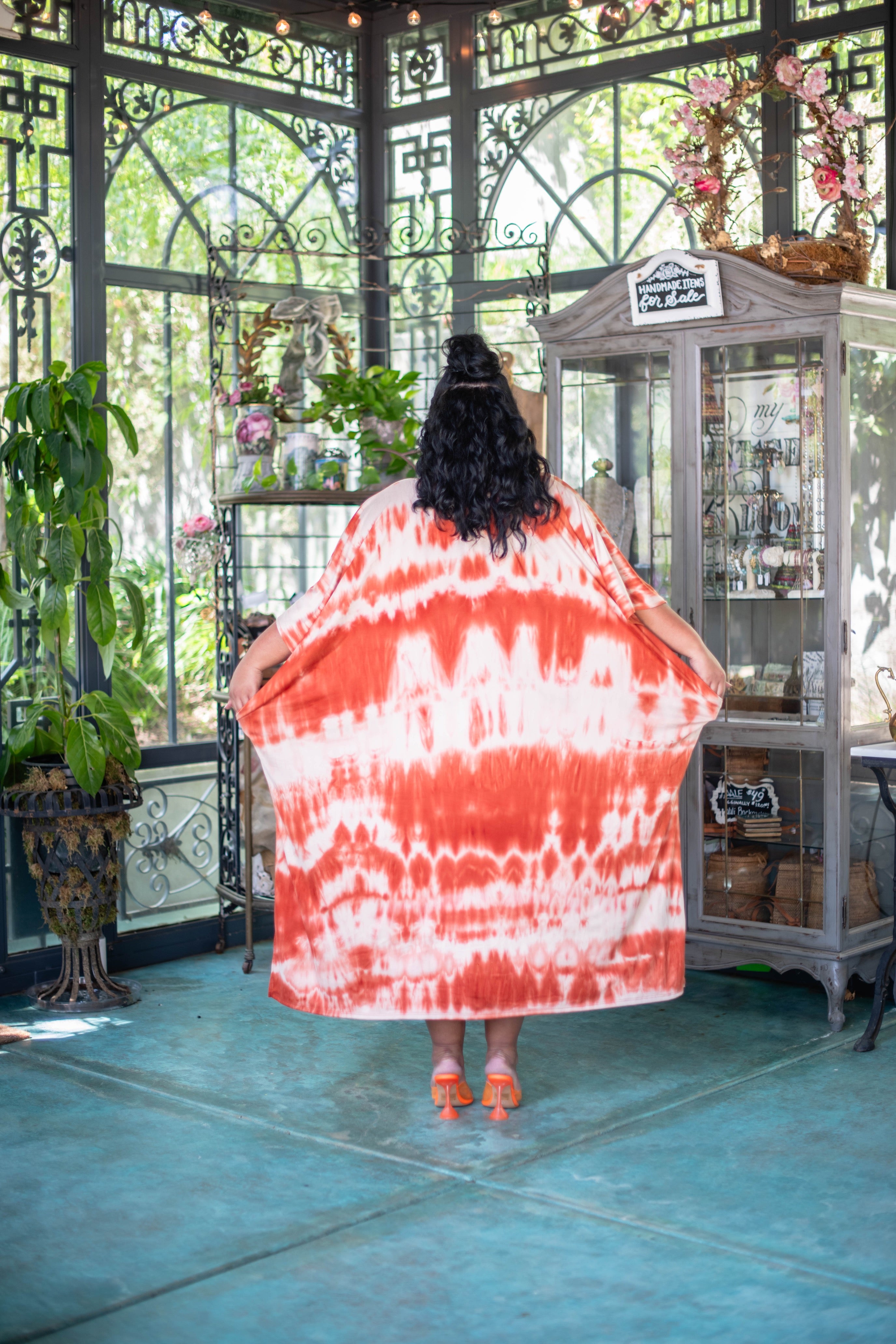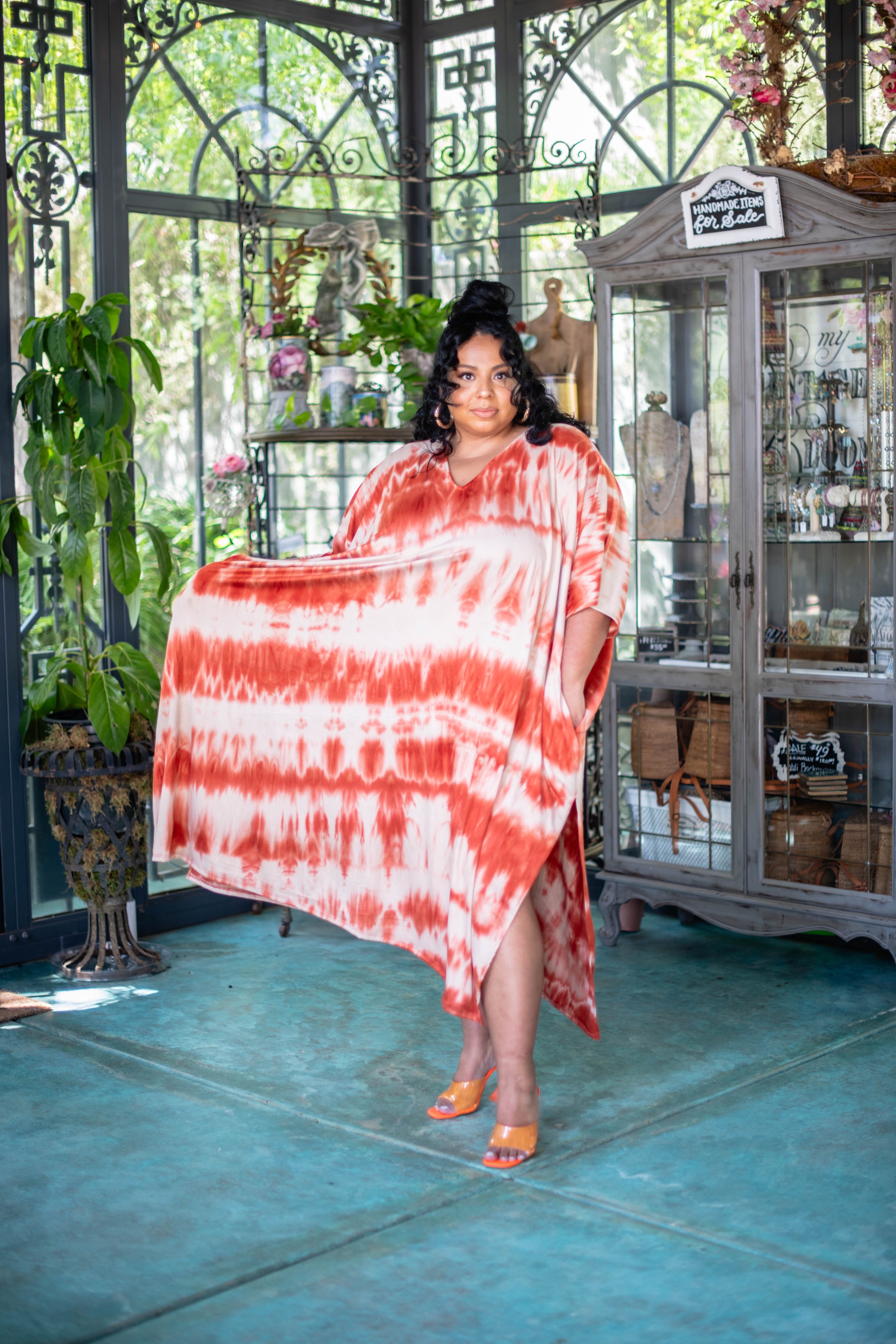 Embrace quality craftsmanship with our cream and orange tie-dye brushed fabric. With deep pockets for convenience, it's perfect for storing unexpected finds during laundry. Practical and stylish, it's a versatile addition to any wardrobe.