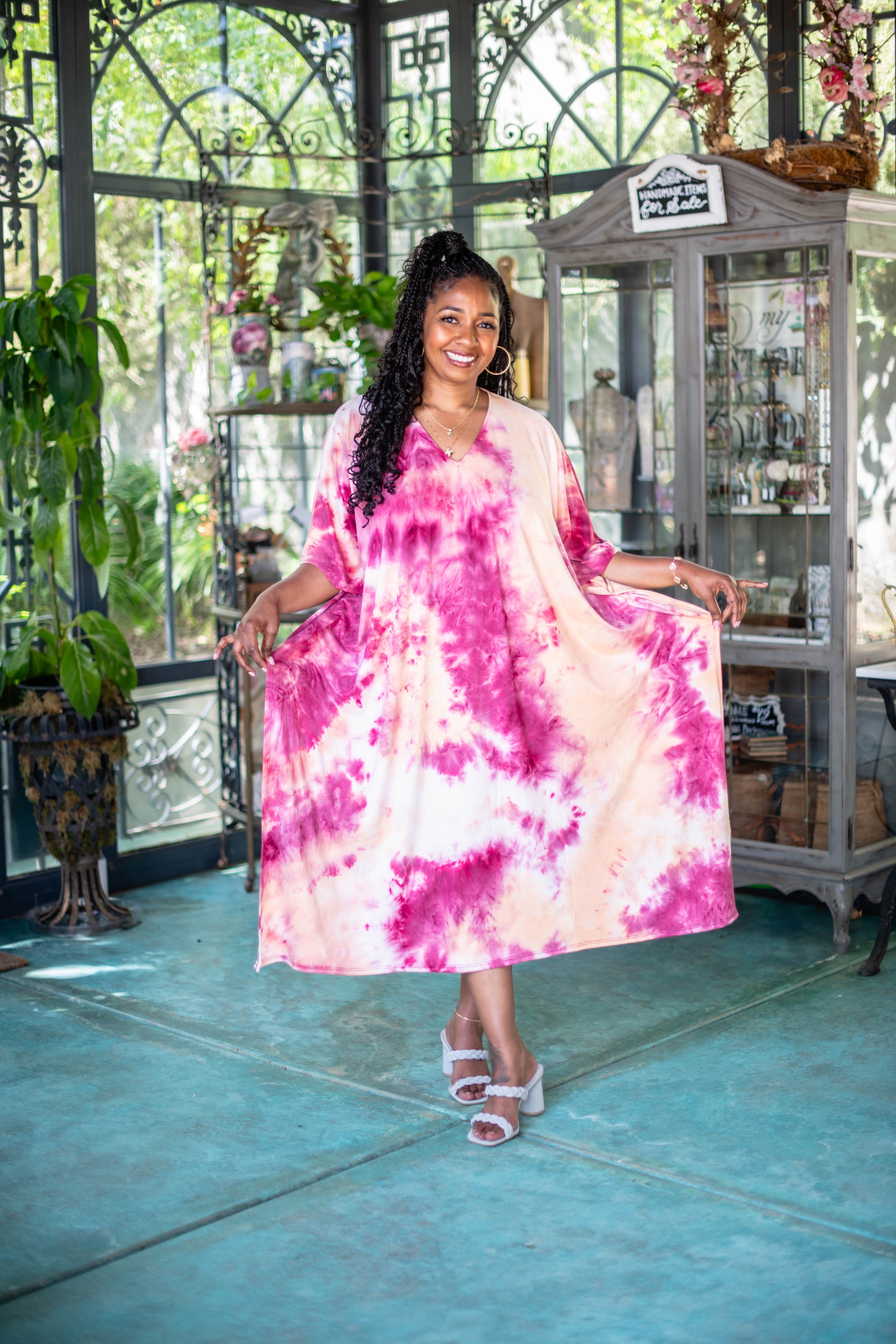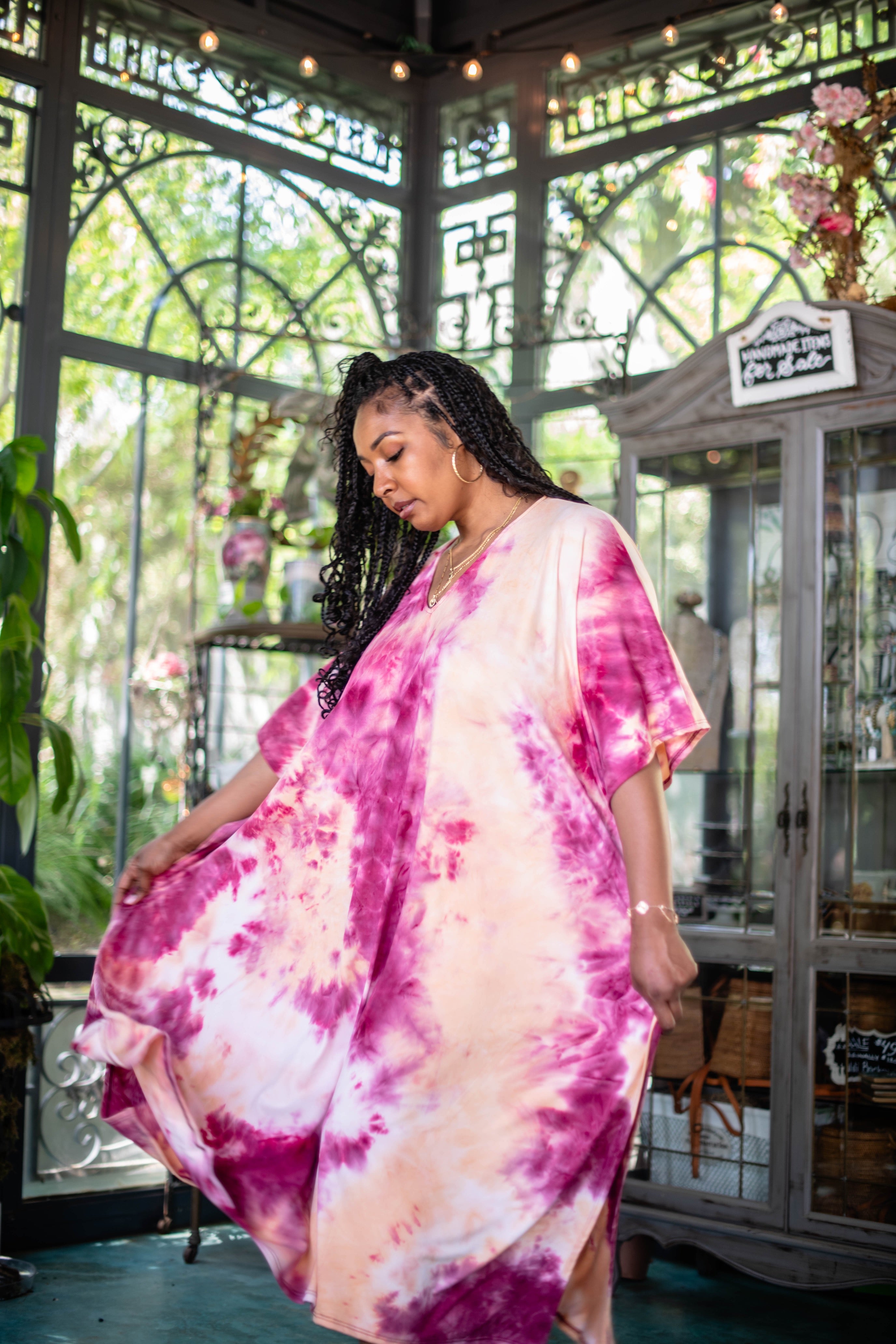 Indulge in the deliciously vibrant hues of orange and fuchsia with this gorgeous muumuu. Take a scoop of these colors and feel the soft and gentle touch of the Muuving fabric against your skin.