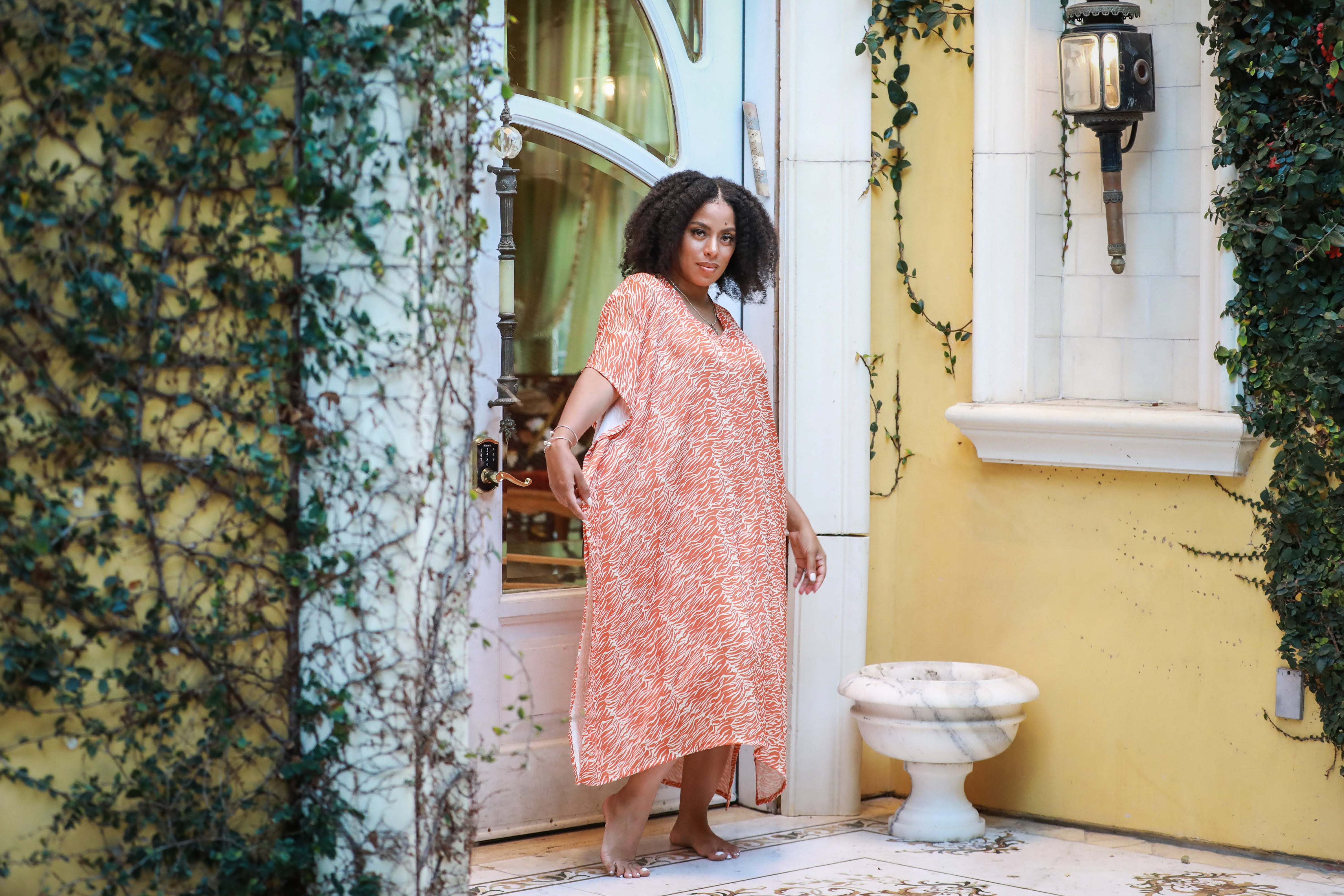 Be free and wild in this satin zebra print muumuu.