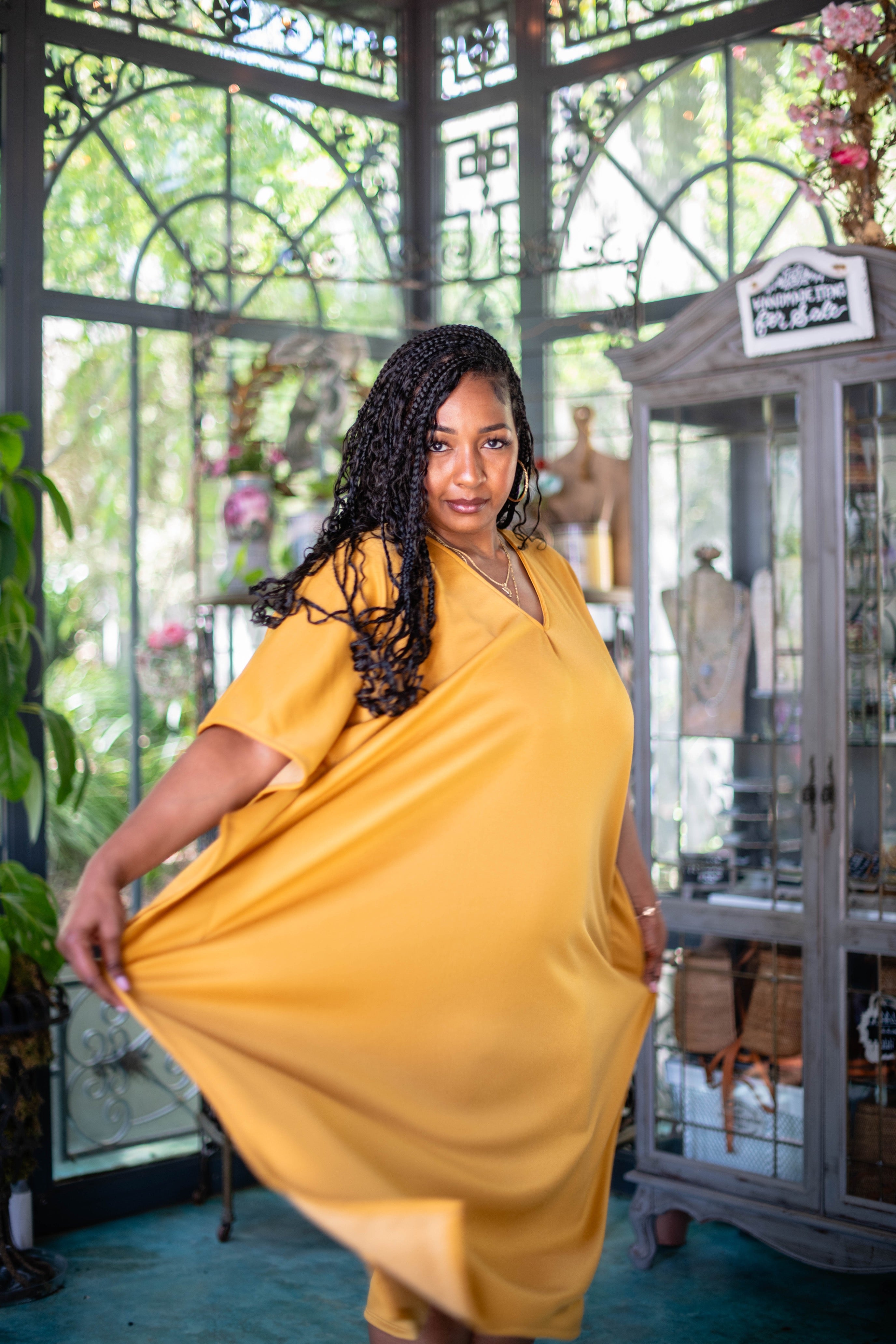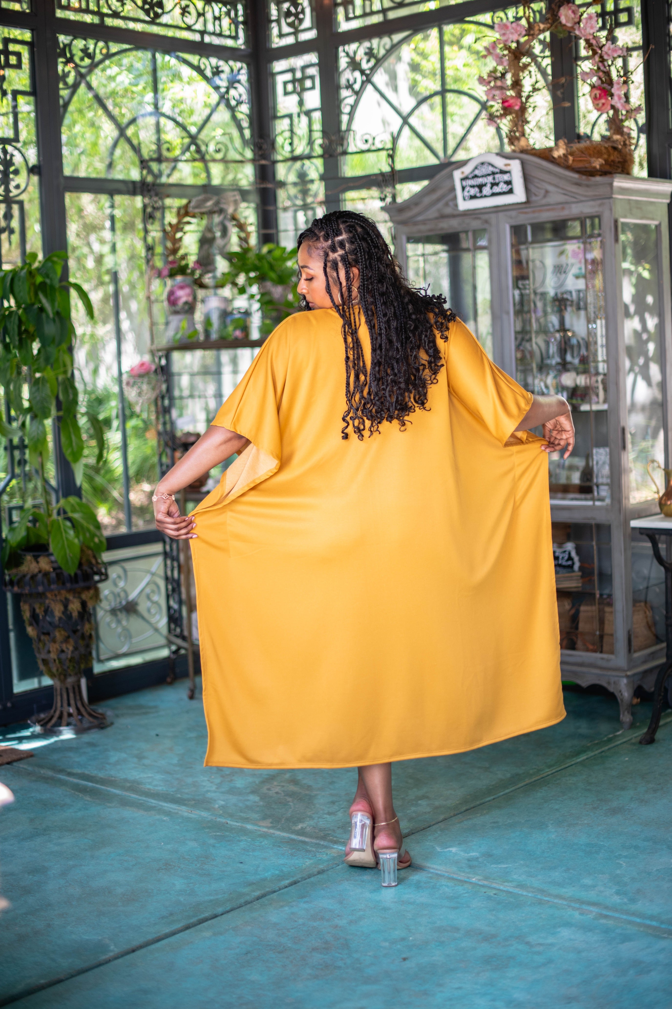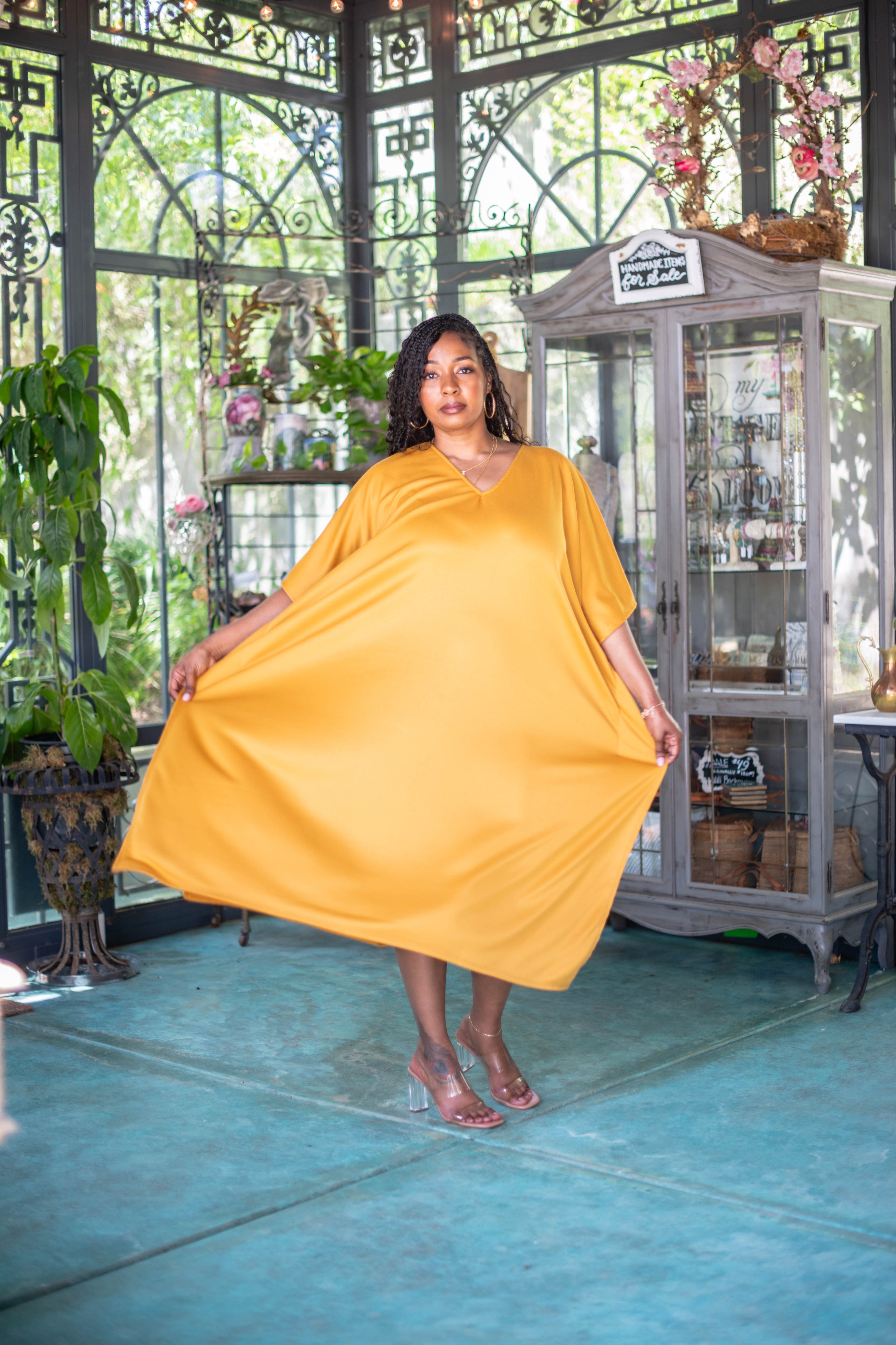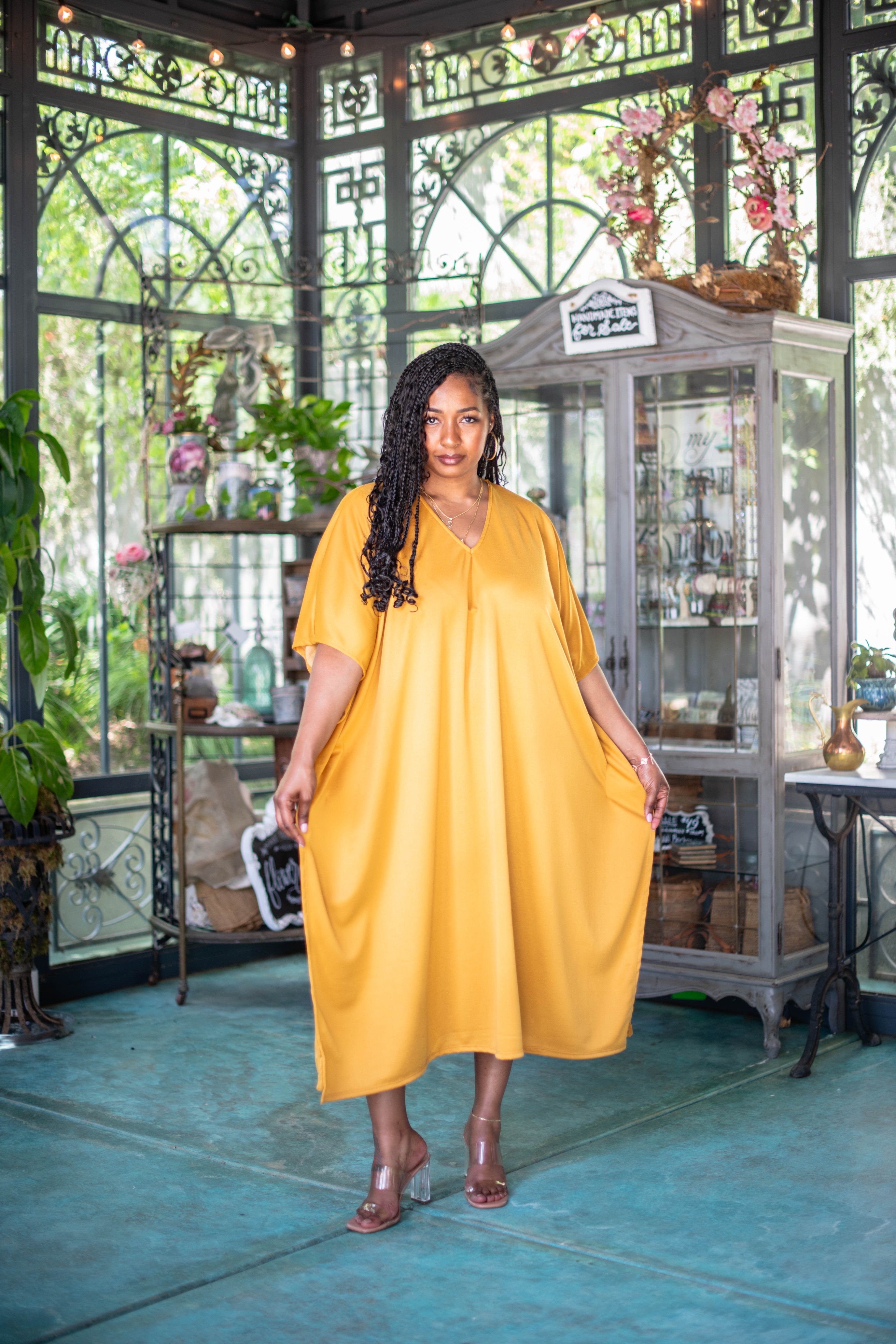 A simple & sweet solid mustard colored muumuu that combines comfort and flair. With its cozy feel, it's perfect for lounging at home or muuving that bawdy with a mojito in hand.