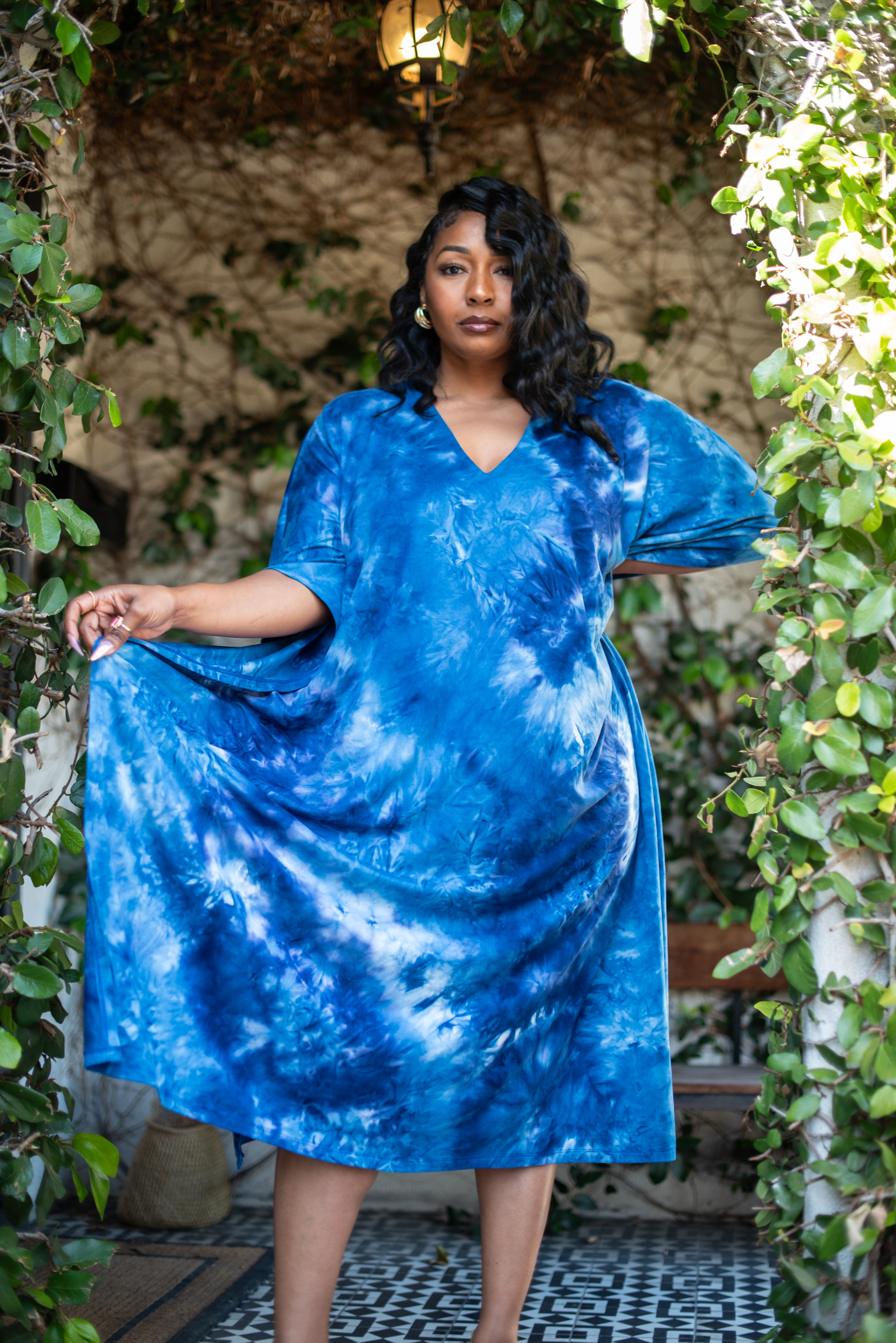 Wavey Kaleidoscope is a cloud soft, tie-dye daydream that lets your body breathe and your booty muuv. With its airy V-neck, generous flow, and breeze catching freedom in all the right places, this is the muumuu made for twerking in the tropics, lounging in luxury, or dancing barefoot into the night. Easy to pack, easier to wear just slip it on and let the good vibes follow